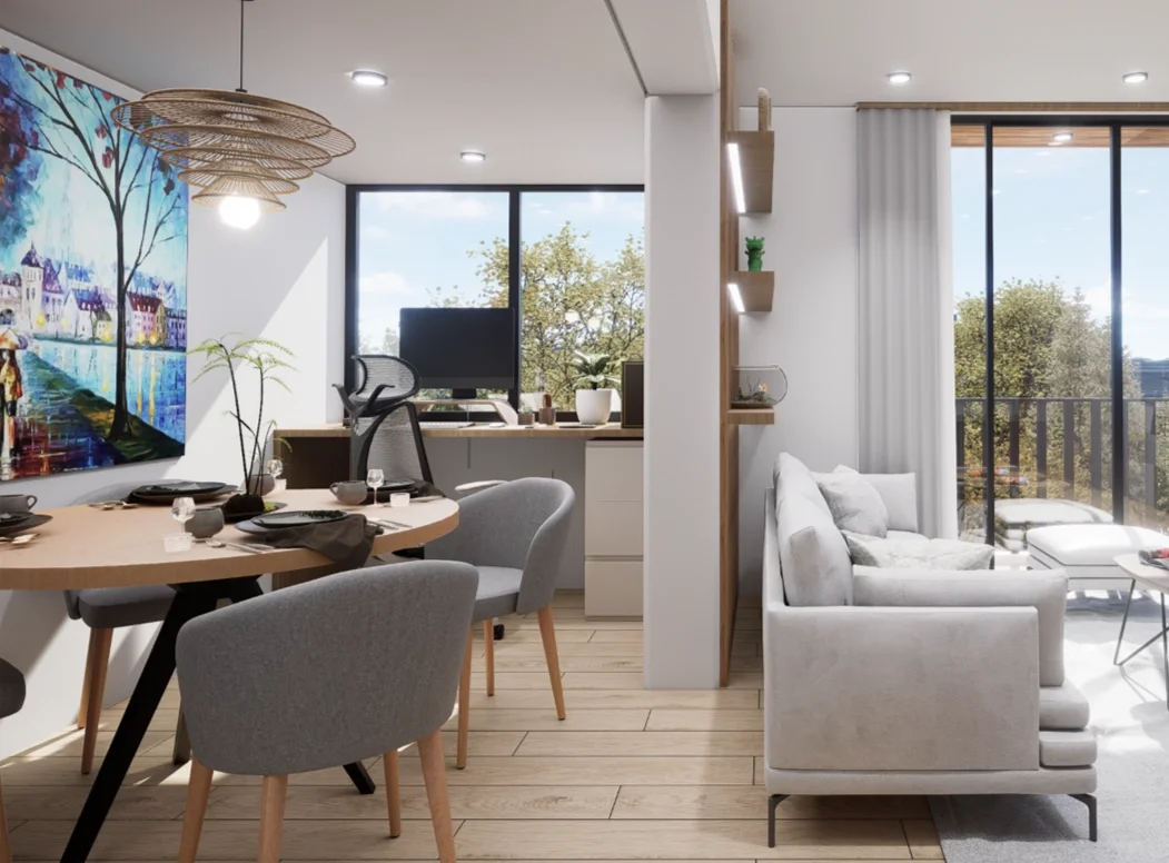 Estos departamentos cuentan desde 1 hasta 3 dormitorios, al ingresar al primer nivel de cada dúplex, te recibirán áreas sociales integradas que incluyen una sala de estar, comedor y cocina de concepto abierto. Grandes ventanales permiten la entrada de abundante luz natural, creando un ambiente cálido y acogedor ideal para compartir momentos en familia o con amigos.